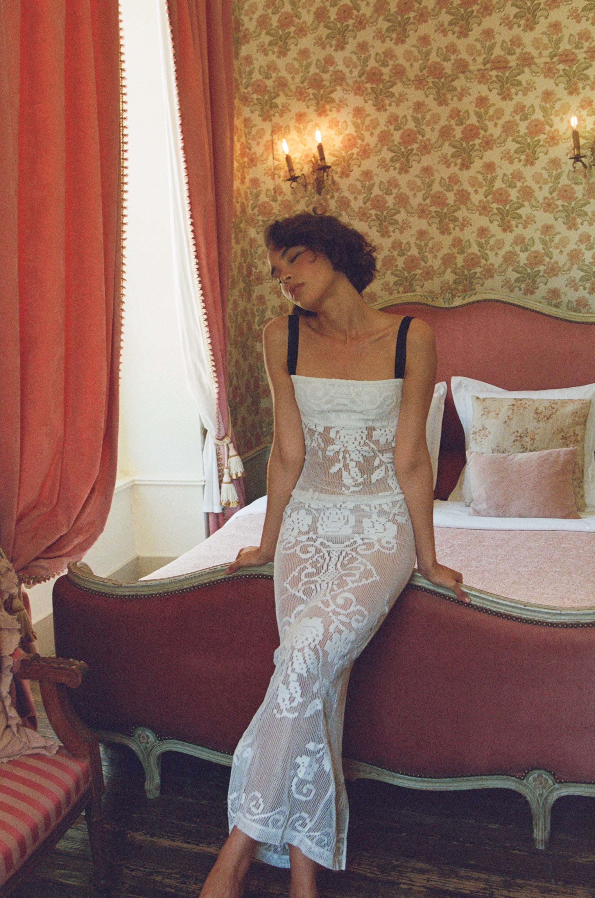 The Saint Midi Skirt is a low rise, midi length skirt designed to be worn low on the hips featuring an elasticated waistband and leg split at the centre back.