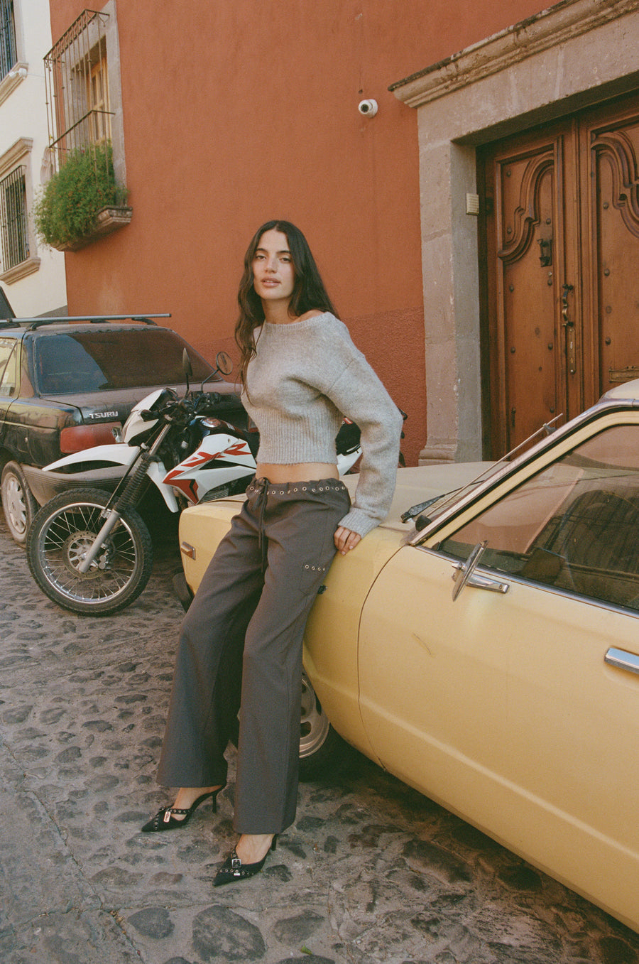 The Pierre Sweater is a heavyweight knit sweater with relaxed sleeves and ribbed detailing at the waist and cuffs.