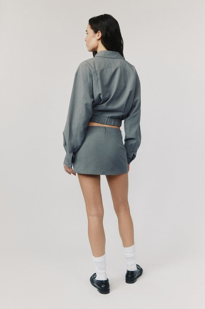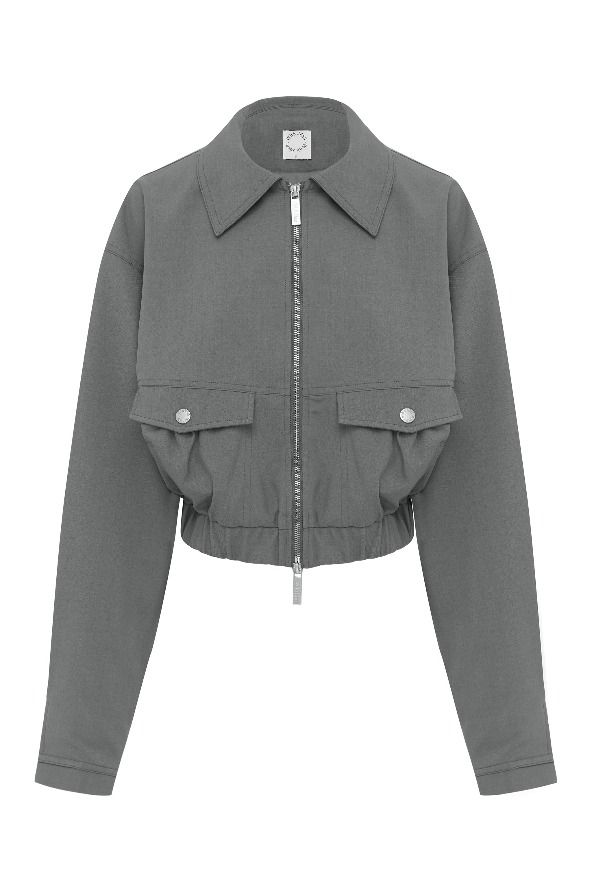The Monroe Jacket is a collared, long sleeve jacket with a relaxed fit, featuring a gathered waistband. Finished with front flap pockets and a custom double-headed YKK branded zipper.