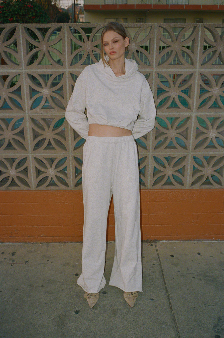 The Tommy Track Pant is a relaxed, oversized pant with an elasticated waistband and internal drawstring, featuring side pockets.