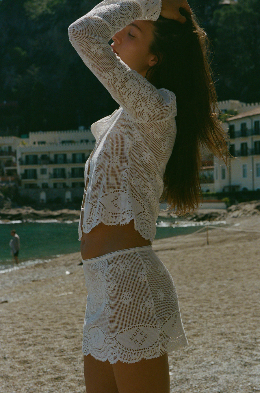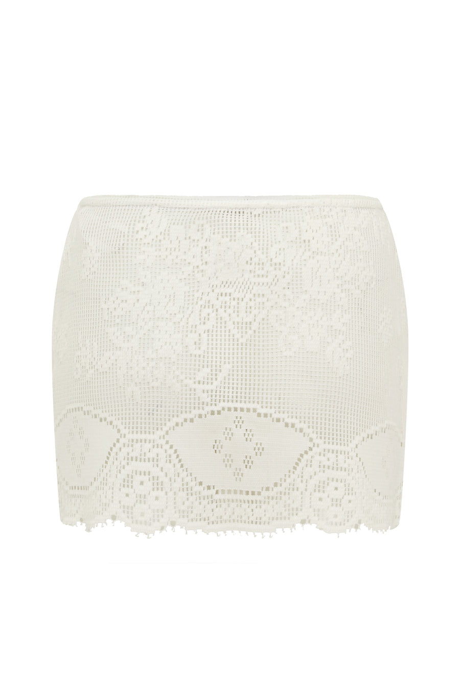 This is a lightweight woven crochet lace fabric that is soft to the touch.