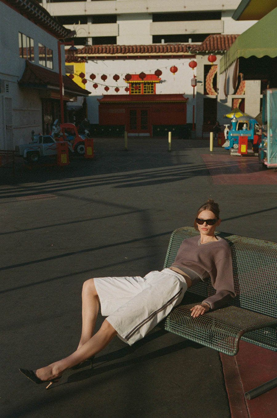 The Romeo Jort is a straight-leg 3/4 pant with an adjustable drawstring waistband and contrast taping along the legs.