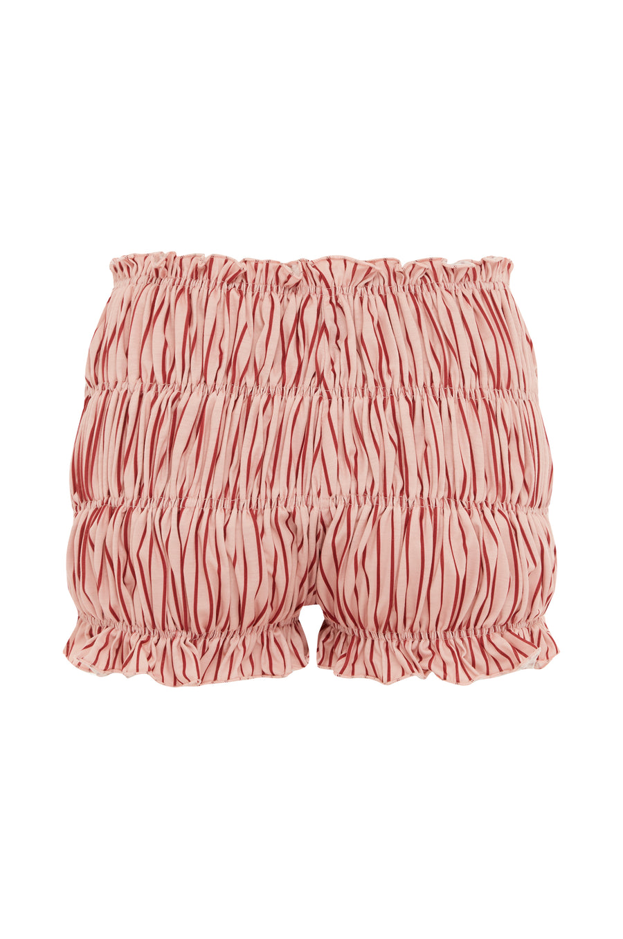 The Bea Top is a strapless top, featuring elasticated ruching detailing throughout, and a contrast bow at centre front.