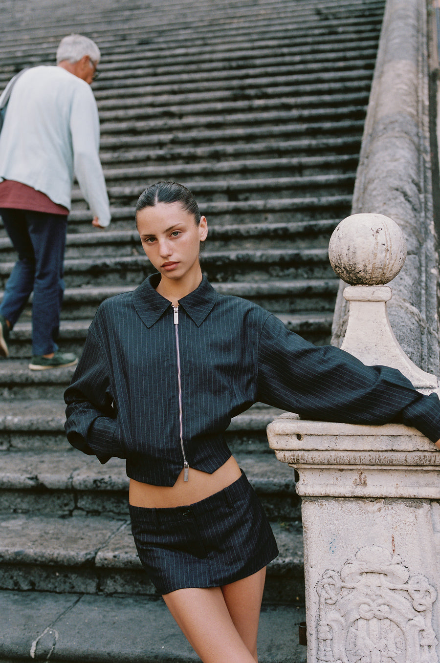 The Frankie Skort is a low-rise, mini skort featuring belt loops, a front zip and button closure, and built-in shorts for added coverage.
