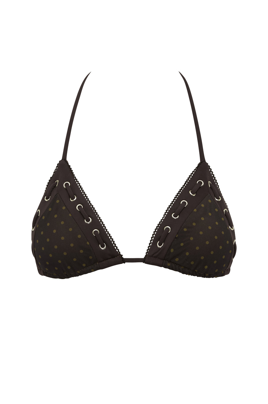The Juni Bikini Bottom is a cheeky-cut bottom with eyelet lace-up detailing and tie sides for a customizable fit.