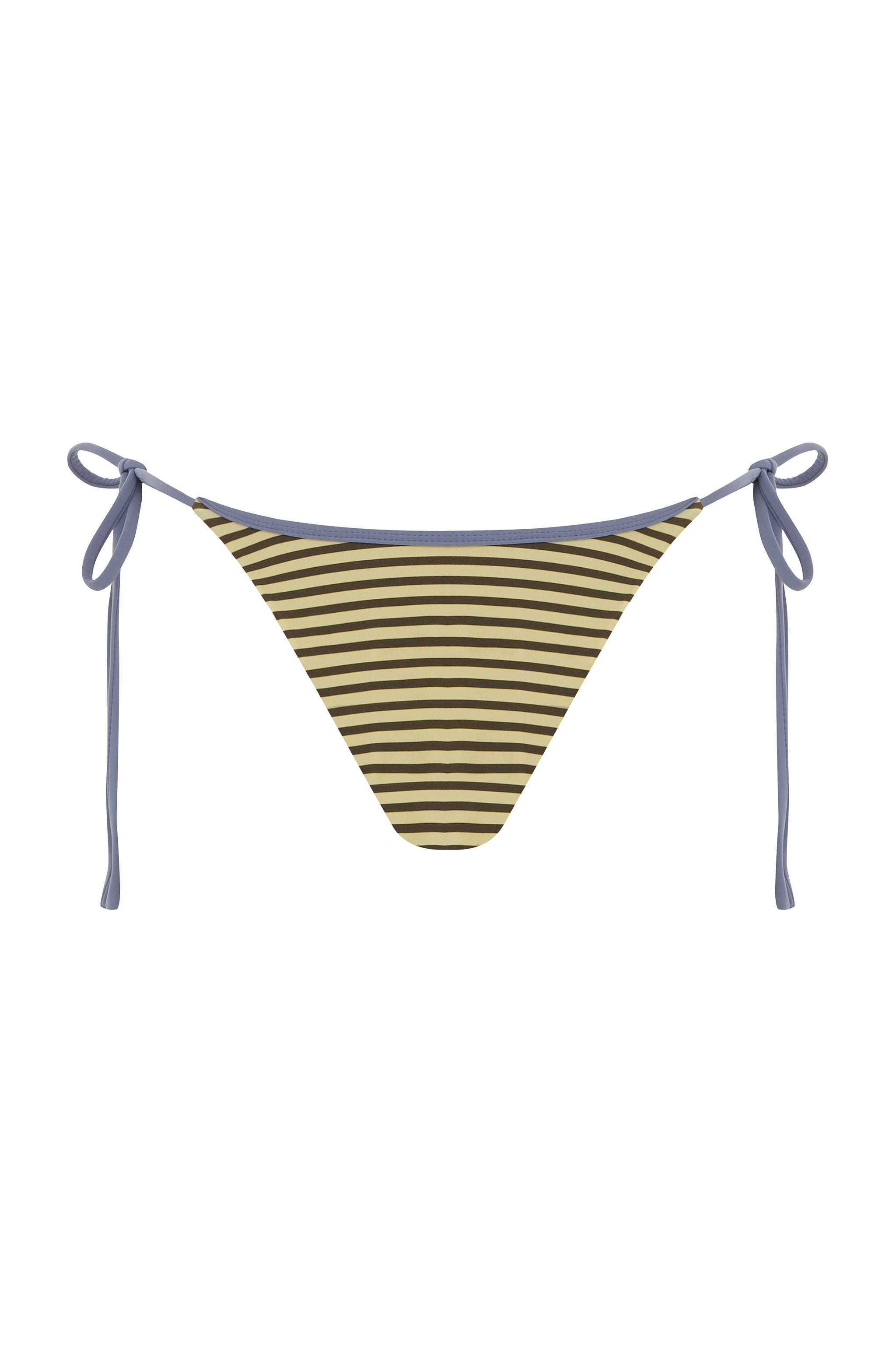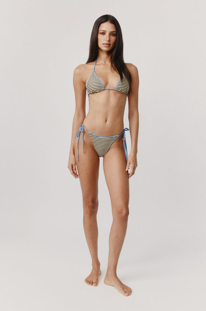 The Juni Bikini Bottom is a cheeky cut bottom featuring tie sides and contrast binding.